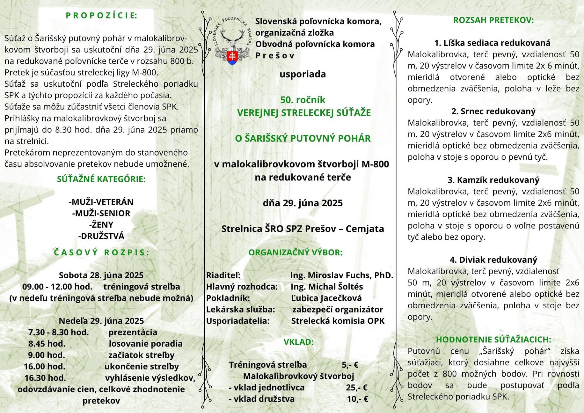 Pozvánka na 50. ročník verejnej streleckej súťaže o Šarišský putovný pohár