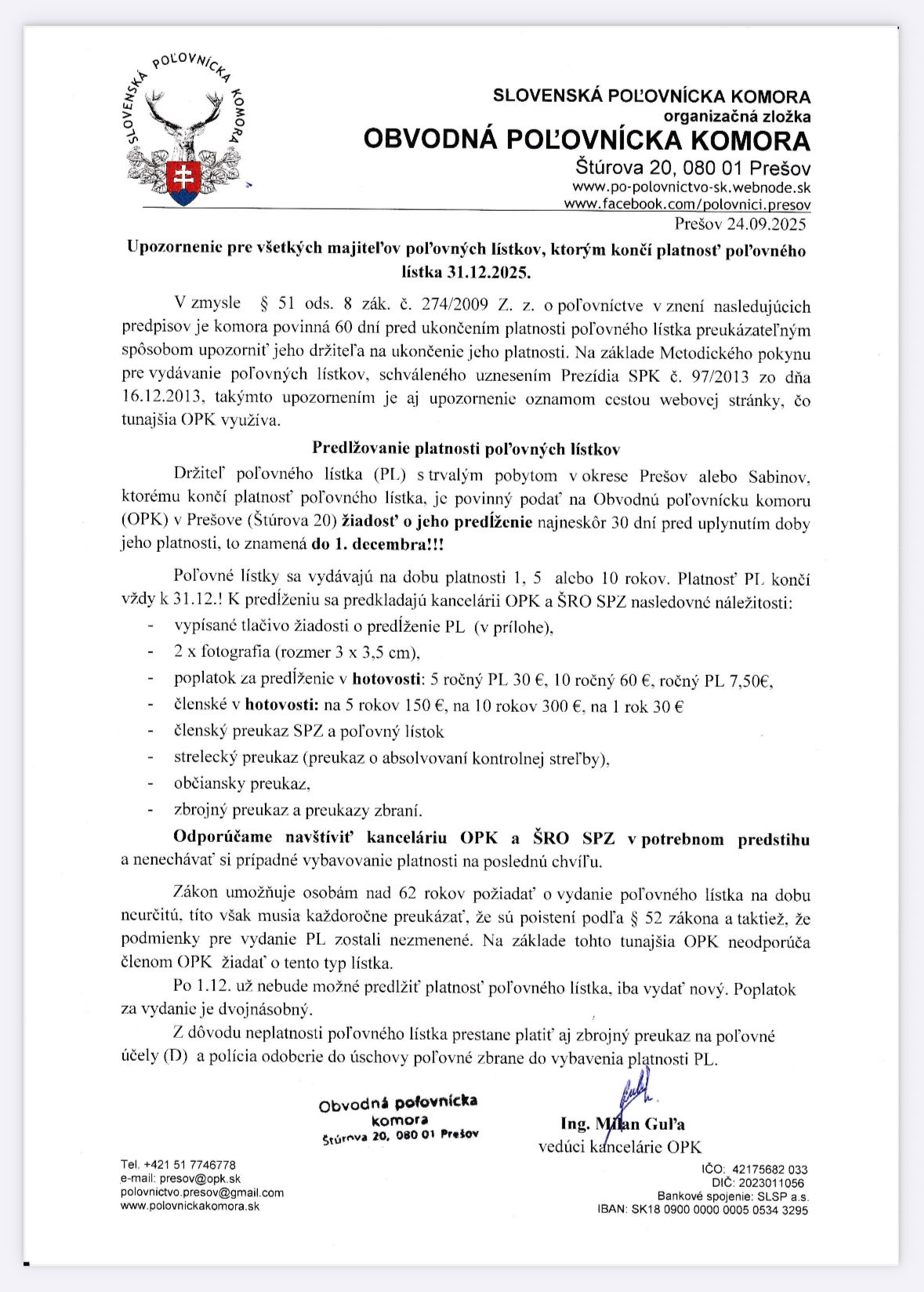 Predľžovanie platnosti poľovných lístkov končiacich 31.12.2025